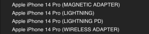 You have the choice of your iPhone 14 Pro either by MAGNETIC ADAPTERS (Apple Like Safe) with the standard Lightning cable, with Lightning PD (Power Delivery) or with a WIRELESS ADAPTERS (QI (wireless but not magnetic)) charge. The corresponding adapter and the charger with the right connection are automatically taken into account in the selection.
